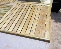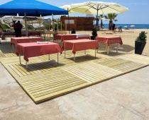 Superficies de madera tratada. Ideales para cubrir superficies irregulares como arena o tierra y crear una base plana sobre la que asentar diferentes elementos (chiringuitos, aseos, quioscos, pérgolas,…)