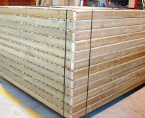 Estructura formada por entramado de vigas en madera de pino silvestre con tratamiento en autoclave riesgo IV de vacio-presión-vacio con una penetración P9.